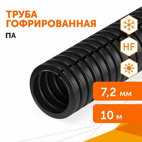 Труба гофрированная ПА безгалогенная (HF) стойкая к ультрафиолету разрезная черная d7,2 мм, 10м
