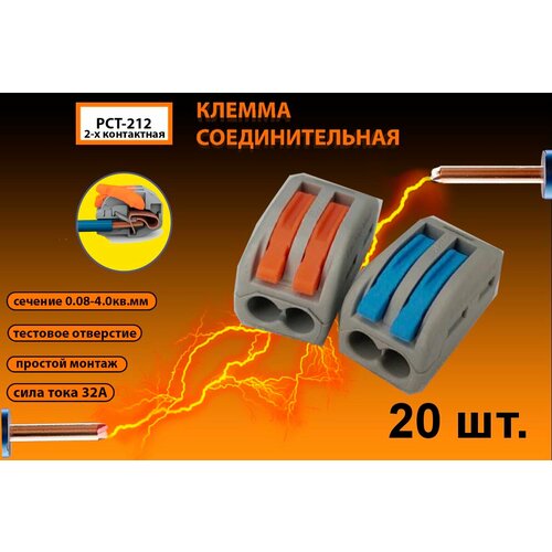 Клемма двухконтактная, 20 шт, тип WAGO (Ваго), соединительная для проводов