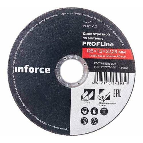 Диск отрезной по металлу (125х1.2х22.23 мм) Inforce IN125x1,2