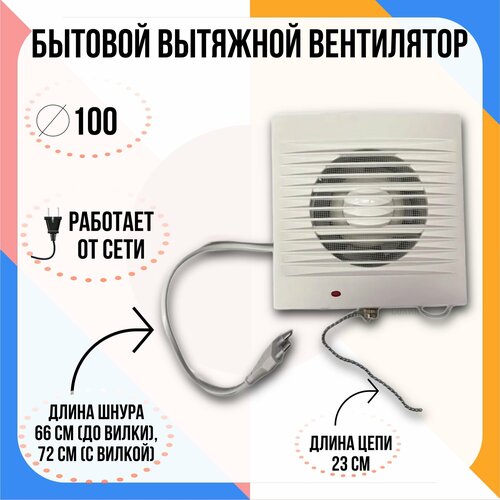 Вентилятор осевой / вытяжка в ванную / вытяжка в туалет d100 мм белый