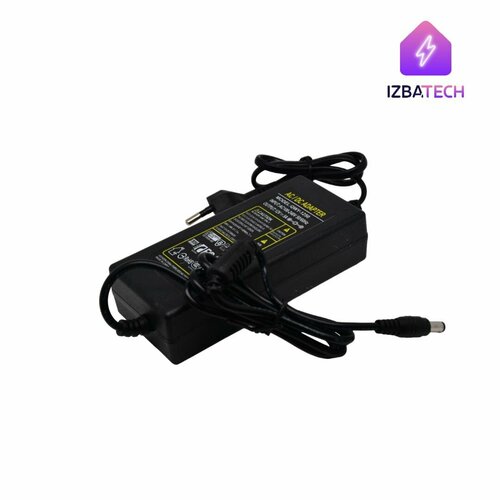 Блок питания с евровилкой AC/DC для светодиодных лент 12V 5A черного цвета шнур 1 м, штекер 5.5*2,5 мм