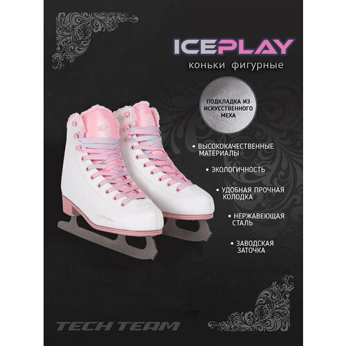 Фигурные коньки для девочек и женщин Tech Team Ice Play бело-розовые, размер 40