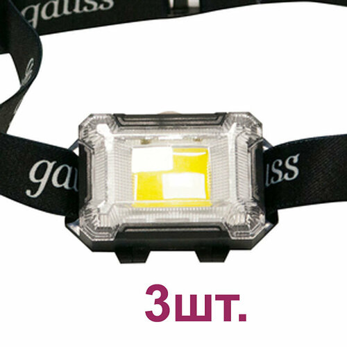 Фонарь налобный Gauss (GF304) светодиодный 1 LED 3 Вт на батарейках AAA пластик 3 режима (3 шт.)