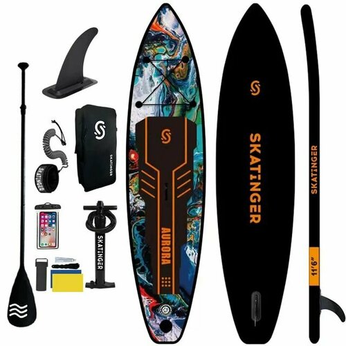 Надувная Сап-доска SKATINGER Aurora black (SUP board) трёхслойная 335*84*15см