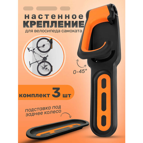 Кронштейн для велосипеда настенный подвес держатель велосипеда, белый желтый, комплект 3 шт, черный оранжевый