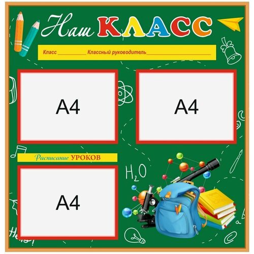 Стенд Наш класс 800 х 800 пластик 3мм с карманами А4-3шт.
