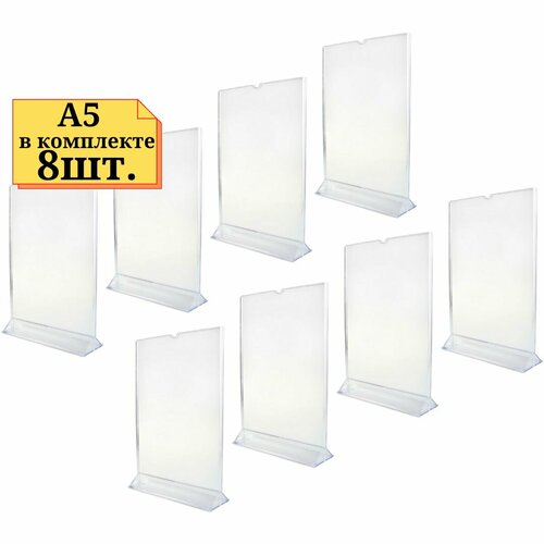 8шт. Подставка из акрила с треугольным основанием А5 вертикальный Менюхолдер А5, Оргстекло толщина 2мм