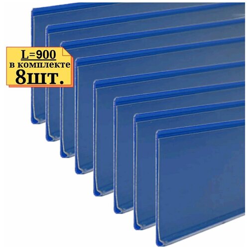8шт. 900мм. Ценникодержатель синий на полку, самоклеящийся, длинной 900мм, ценник держатель полочный