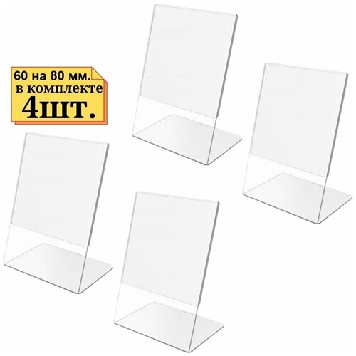 4шт Держатель для ценника настольный 80*90мм вертикальный, Оргстекло толщина 1мм