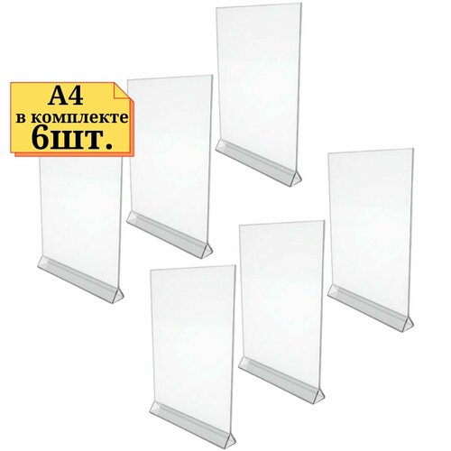 6шт. Подставка из акрила с треугольным основанием А4 вертикальный Менюхолдер А4, Оргстекло толщина 2мм
