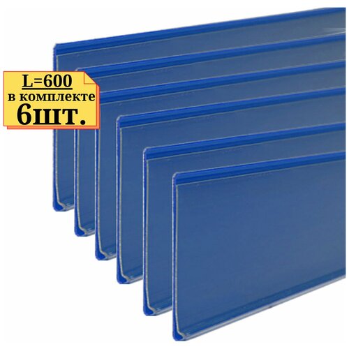 6шт. Ценникодержатель на полку синий , ценникодержатель самоклеящийся, длинной 600мм, ценникодержатель полочный