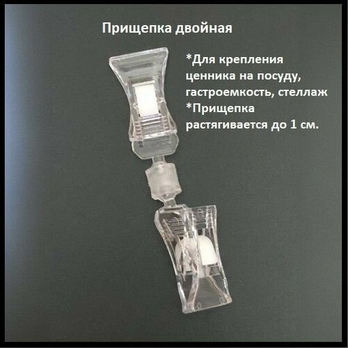 Держатель ценника прищепка Двойная прозрачная: 10 штук.