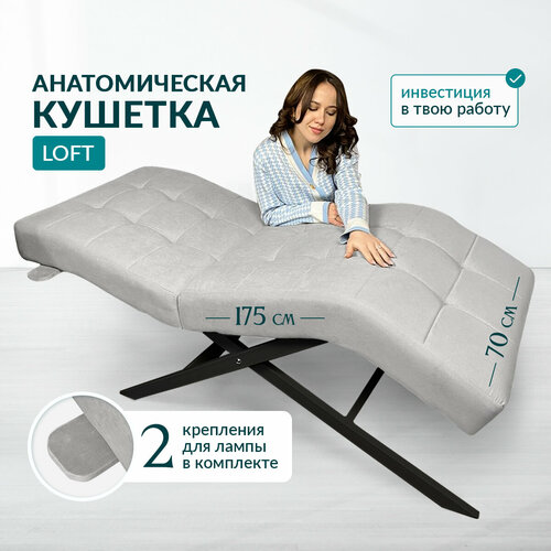 Анатомическая кушетка в стиле Лофт, в салон красоты, серебристая ножка, в студию, для наращивания ресниц, для преманентного макияжа, Велюр Цвет Бежевый