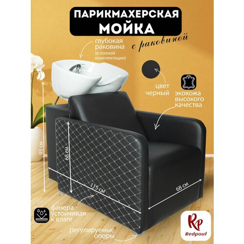 Парикмахерская мойка с креслом Квадрат, глубокая раковина белого цвета, Уютный мастер, темно-
