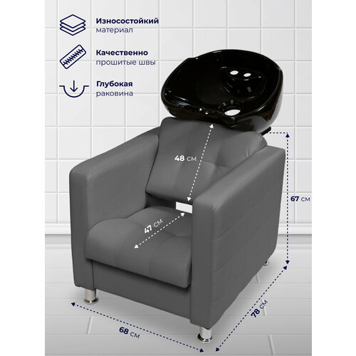 Парикмахерская мойка с креслом Квадрат, глубокая раковина черного цвета, Уютный мастер, светло- серый