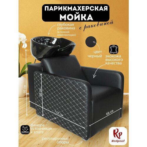 Парикмахерская мойка "Сидней", Белый, Раковина черная глубокая