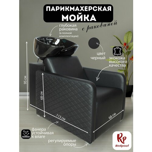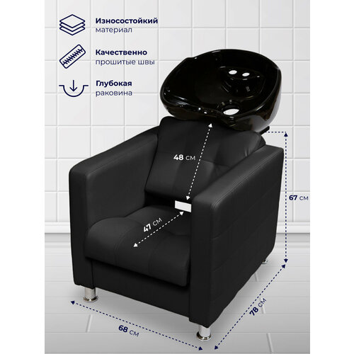 Парикмахерская мойка с креслом Квадрат, глубокая раковина черного цвета, Уютный мастер, темно-
