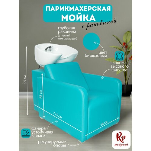 Парикмахерская мойка Emirates Бирюзовая с белой раковиной