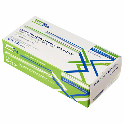 Пакет комбинированный самоклеящийся 100х210 мм EUROTYPE 200 шт, для паровой/газовой стерилизации, 631211