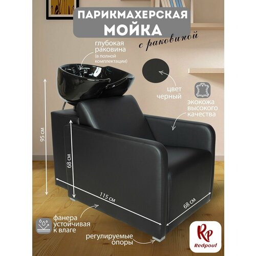 Парикмахерская мойка "Сидней", Белый, Раковина черная глубокая