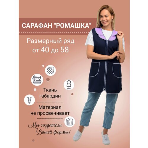 Сарафан рабочий габардин "Ромашка" т-синий/сирень 56/58