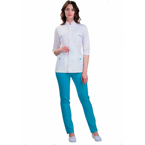 Костюм женский №415 (тк. ТиСи) DoctorBIG, белый/бирюзовый (0/43/43), 42; 158-164, шт/ Медицинский костюм / Спецодежда / Рабочий костюм женский