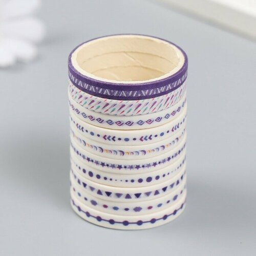 Клейкая лента бумага "Ассорти рисунков. Фиолет" набор 10 шт ширина 0,5 см намотка 2 м