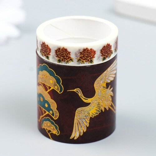 Клейкая лента бумага "Веера и журавль" набор 2 шт ширина 1; 4 см намотка 2 м