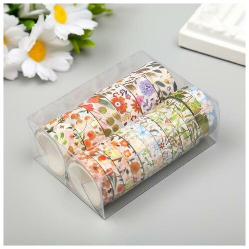 Клейкая лента бумага "Цветы" набор 18 шт ширина 0,8;1,5 см длина 3 метра 9,5х7х3,5 см