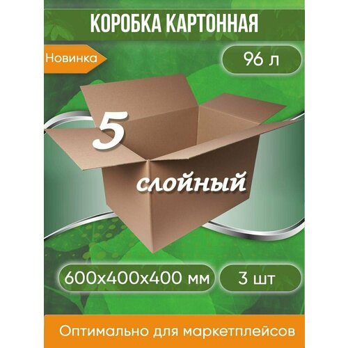 Коробка картонная, 60х40х40 см, профессиональный, пятислойный, без ручек, объем 96 л, 3 шт. (Гофрокороб, 600х400х400 мм )