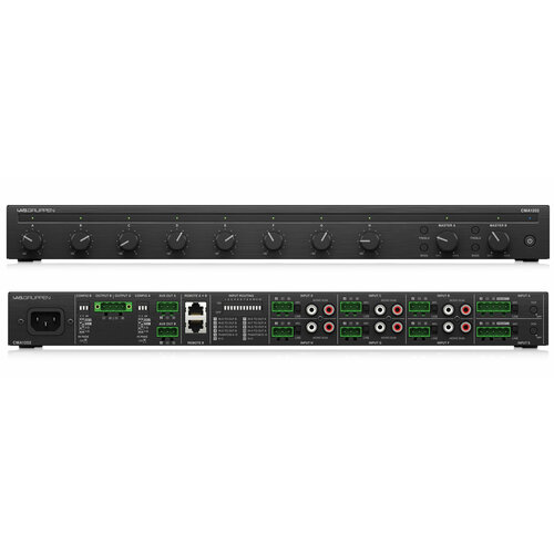Lab.gruppen CMA1202 микшер-усилитель, 8 входов на 2 зоны или 4 стерео x 1 стерео, 8 mic/line, из них 2 входа приоритета с дакингом, 2 выхода AUX, 4/8О
