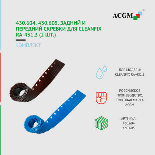 430.604, 430.605. Комплект с задним и передним скребком для Cleanfix RA-431,3 (2 шт). Запчасти для поломоечных машин.