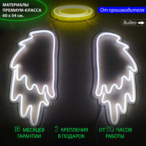 Неоновая вывеска «Ангел» для фотозоны, 60 х 54 см. (нимб и крылья)