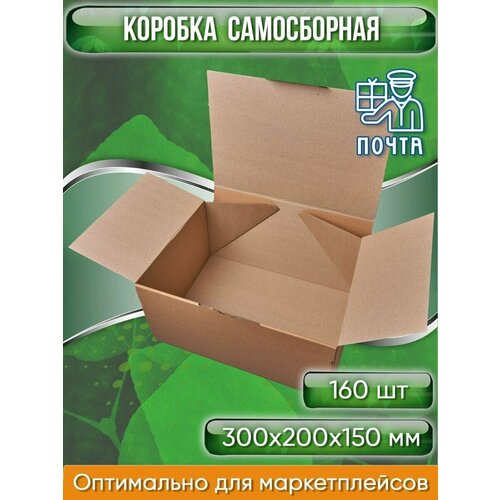 Коробка картонная самосборная, 30х20х15 см, объем 9 л (Гофрокороб 300х200х150 мм, короб самосборный, почтовый), 160 шт.
