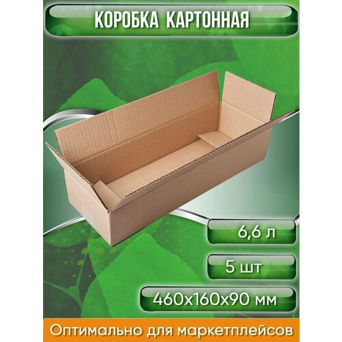 Коробка картонная, 46х16х9 см, объем 6,6 л, 5 шт. (Гофрокороб, 460х160х90 мм )