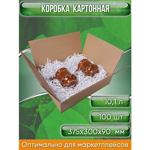 Коробка картонная, 37,5х30х9 см, объем 10,1 л, 100 шт. (Гофрокороб, 375х300х90 мм )