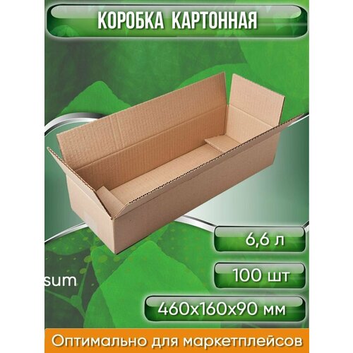 Коробка картонная, 46х16х9 см, объем 6,6 л, 100 шт. (Гофрокороб, 460х160х90 мм )