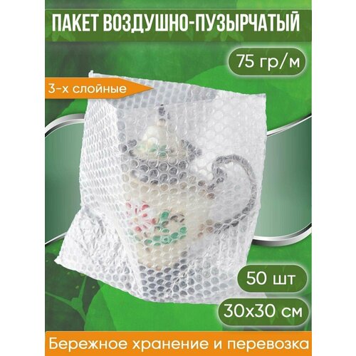Пакет воздушно-пузырчатый (ВПП, пузырьковый, пупырчатый), 30х30 см, трехслойный, плотность пленки 60 гр/м, 50 шт.