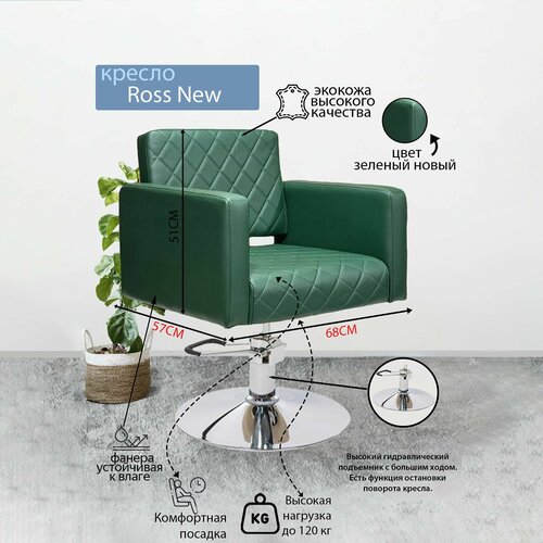 Парикмахерское кресло "Ross new", Зеленый, Гидравлика диск хром