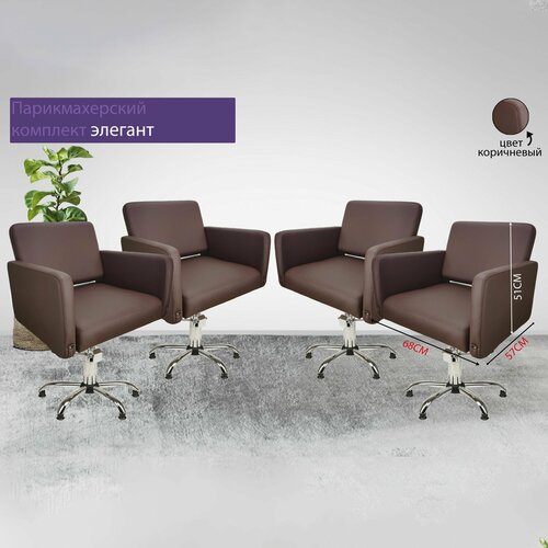 Парикмахерский комплект кресел "Элегант", Коричневый, 4 кресла, Гидравлика пятилучье