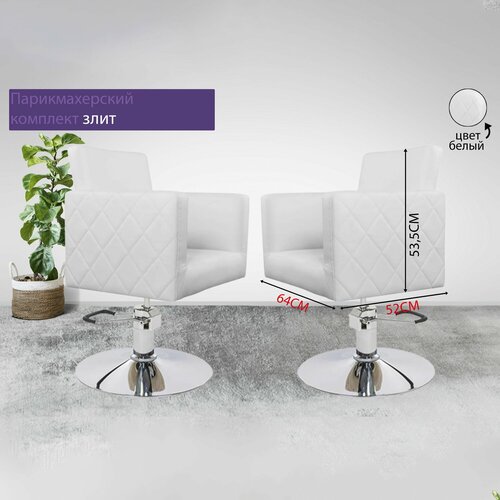 Парикмахерский комплект кресел "Элит", Белый, 2 кресла, Гидравлика диск