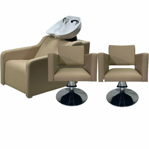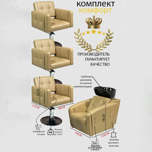 Парикмахерский комплект "Комфорт", Бежевый, 3 кресла гидравлика диск, 1 мойка глубокая черная раковина