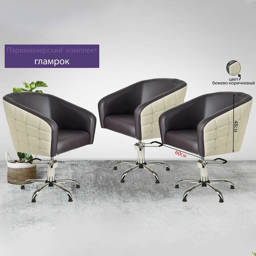Парикмахерский комплект кресел "Гламрок", Бежево-коричневый, 3 кресла, Гидравлика пятилучье