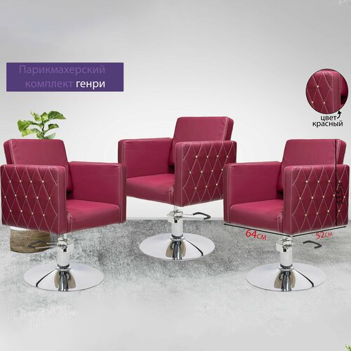 Парикмахерский комплект кресел "Генри", Красный, 3 кресла, Гидравлика диск