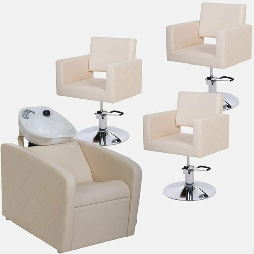 Парикмахерский комплект "Элит", Бежевый, 3 кресла гидравлика диск, 1 мойка глубокая белая раковина