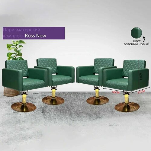 Парикмахерский комплект кресел "Ross new", Зеленый, 4 кресла, Гидравлика диск золото