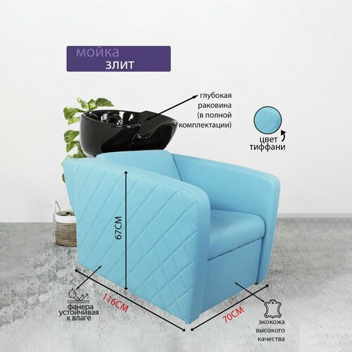 Парикмахерская мойка "Элит", Голубой, Раковина глубокая черная