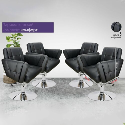 Парикмахерский комплект кресел "Комфорт new", Черный, 4 кресла, Гидравлика диск хром