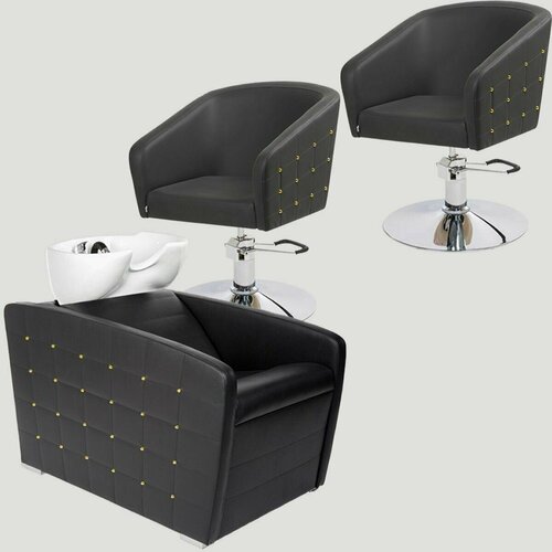 Парикмахерский комплект "Гламрок", Черный, Золотые пукли, 2 кресла гидравлика диск, 1 мойка глубокая белая раковина