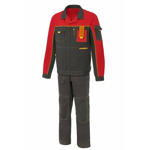 Спецодежда мужская костюм рабочий ПРОФЕССИОНАЛ-2 GENESIS с прочной дышащей тканью ERGOSTUFF+, водоотталкивающей пропиткой и двойными усиленными швами графит/красный 56-58/170-176